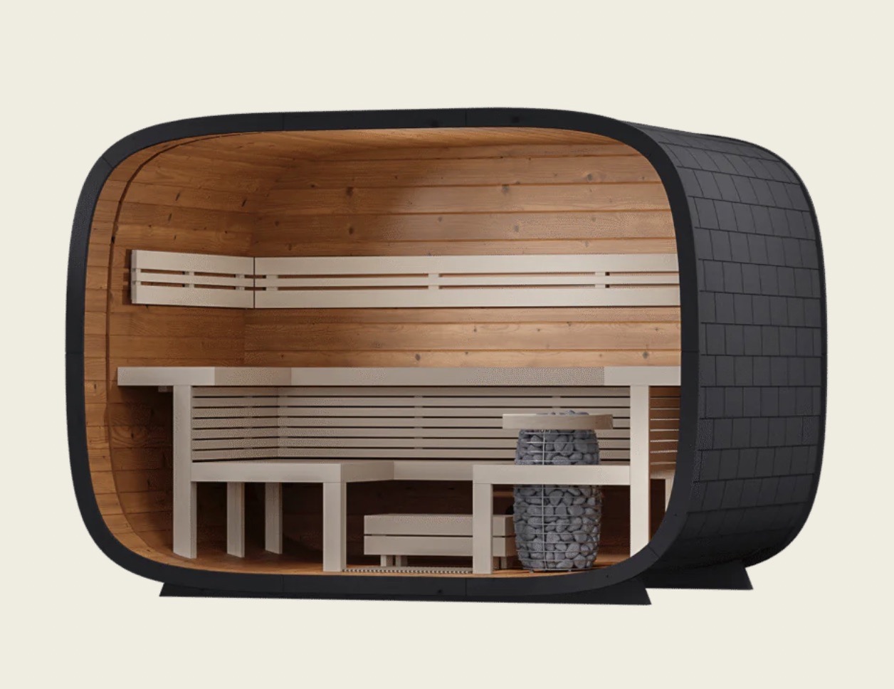 Maak kennis met de Leil® Round Cube RELAX, de ideale sauna voor grotere groepen vrienden en familie, met voldoende ruimte voor maximaal 8 personen. Met zijn royale ruimte is het perfect om comfortabel te ontspannen en uit te strekken op de saunabank.